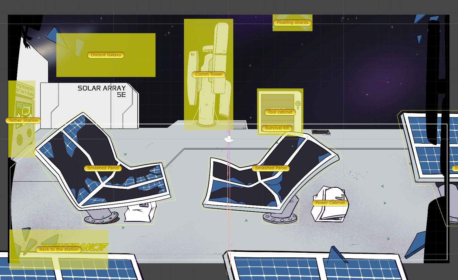 Testing is then done to ensure the NavMesh (a special object that tells the engine what is a walkable surface) and the SortingMap (another special object that controls the illusion of depth by resizing objects based on how far away they are from the viewer)
